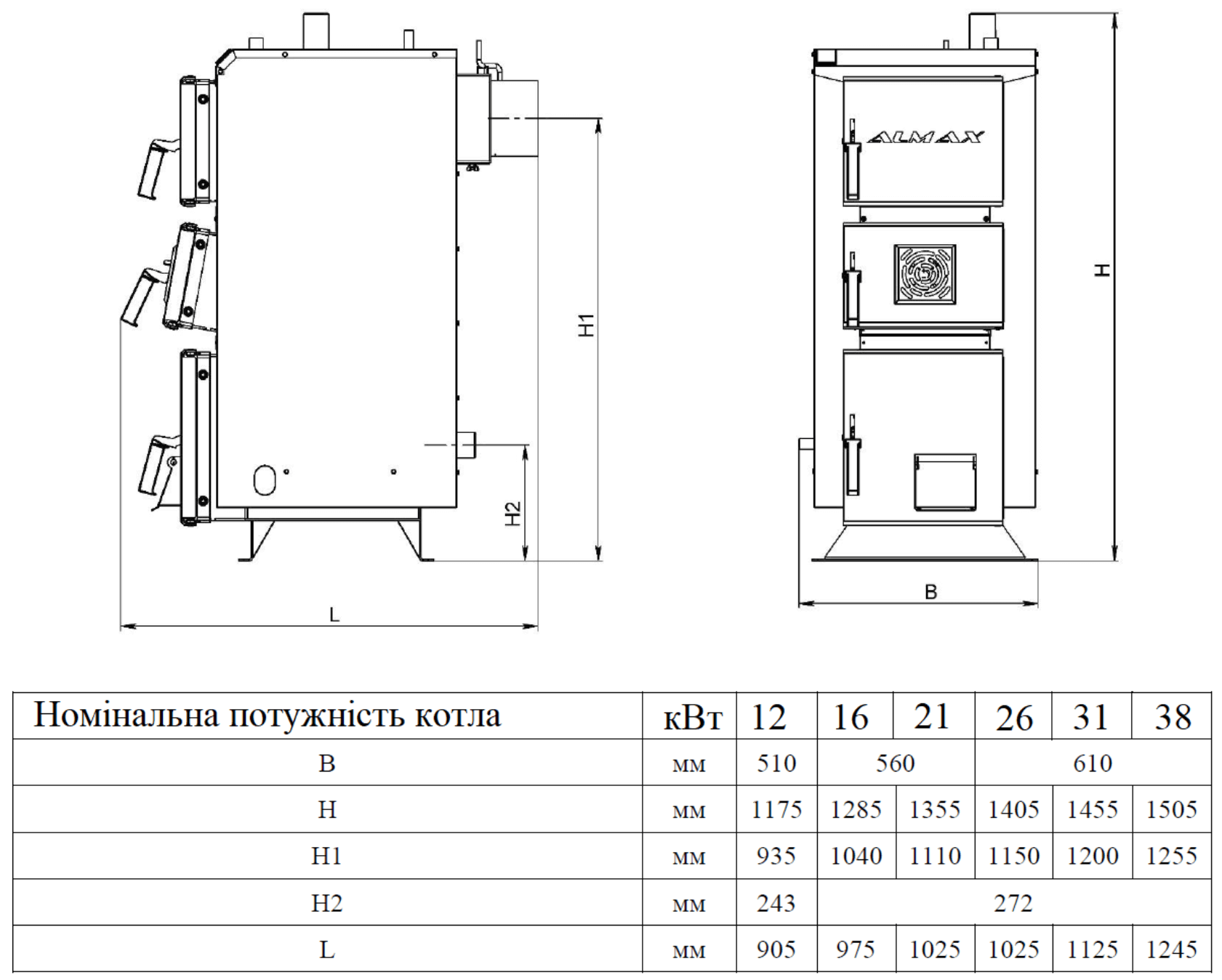 ALMAX Class C (ТИП КТК) – це твердопаливний котел з сталевим теплообмінником, призначений для опалення побутових і виробничих приміщень, обладнаних системою центрального опалення. Робота котла можлива лише в режимі ручної подачі палива.