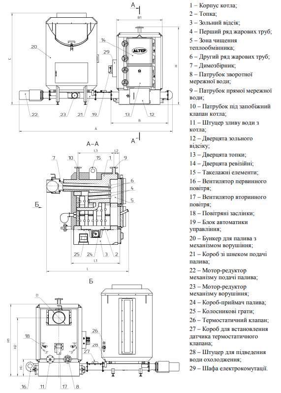 ALTEP BIO UNI (АЛЬТЕП БІО УНІ) — промисловий котел з жаротрубним теплообмінником, який працює на традиційному та альтернативному паливі. У стандартній комплектації передбачене ручне завантаження (дрова, відходи деревини, антрацит, кам’яне вугілля, тирса). За бажанням клієнта котел може бути обладнаний системою автоматичної подачі палива з великого бункера через шнек, що дозволяє використовувати тріску, деревні та агропелети, тирсу, відходи деревини та вугілля дрібної фракції.