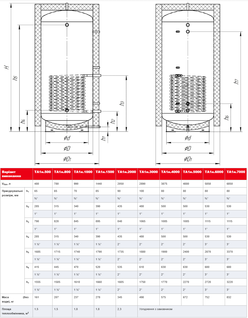 За проханням замовника в ємностях від 3000 л площа теплообмінника може бути змінена для точного налаштування під індивідуальні потреби вашої системи опалення.