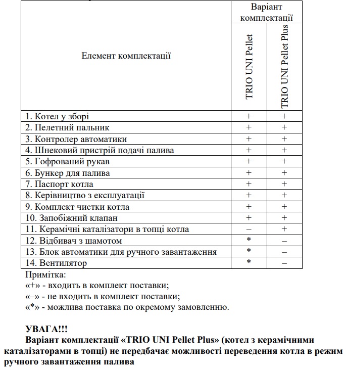 Котел ALTEP TRIO UNI PELLET обладнано пелетним пальником, який працює в автоматичному режимі. Паливо подається шнековим механізмом, що приводиться в дію мотор-редуктором. Подача палива здійснюється з бункера через гнучкий термозахищений рукав.