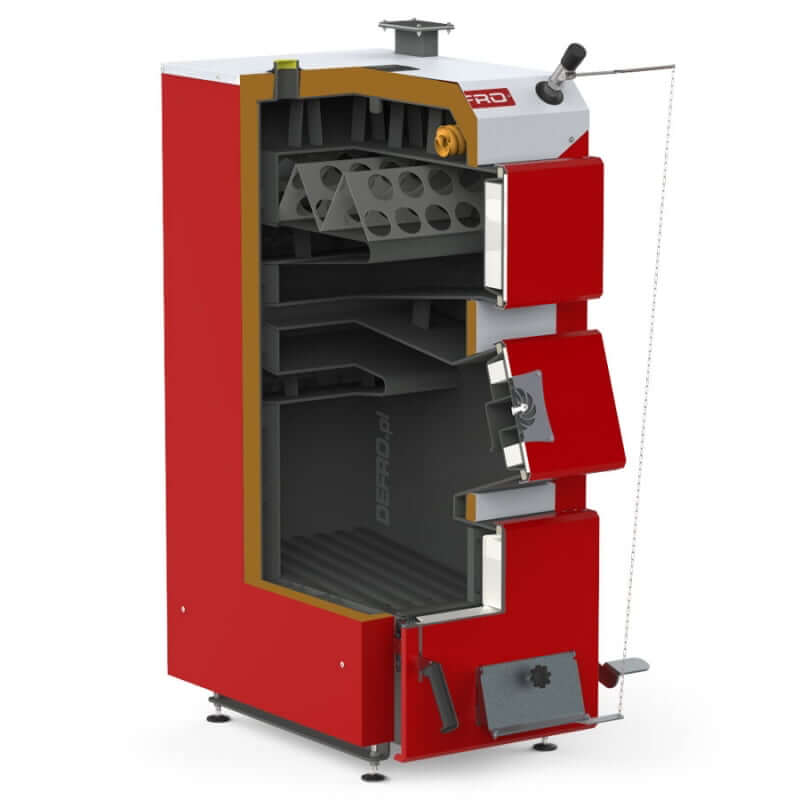 Defro KDR – це польські мультипаливні котли тривалого горіння на вугіллі, суміші вугілля зі штиб, дровах, тирсі та стружці. Збільшена камера завантаження, зручна чистка теплообмінника, економічність і надійність – от що можна в першу чергу сказати про ці котли на твердому паливі. Високий ККД котла досягається за рахунок спеціальної конструкції, що має велику площу теплообміну і багатоточковий наддув повітря через спеціальні форсунки. Через такі форсунки відбувається допалювання піролізних газів. Котел KDR 3 – це вірне рішення виборі твердопаливного котла!