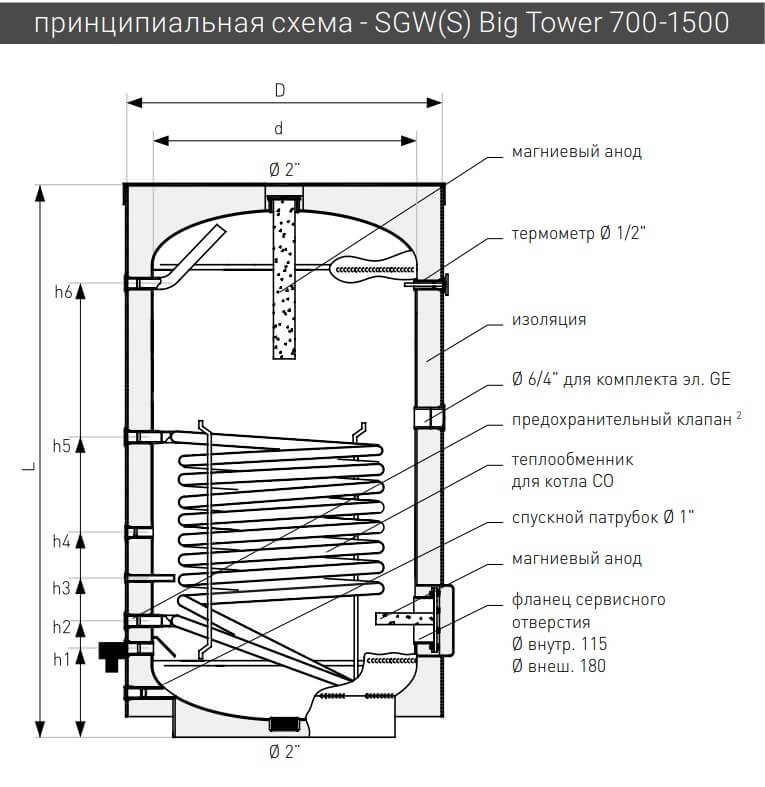 Galmet SGW(S) "Big Tower" - це водонагрівачі непрямого нагріву призначені в першу чергу для великих об'єктів. Вони можуть забезпечити великий запас гарячої води при її інтенсивному використанні (до 2110 л/год). Це вертикальні баки з підлоговим монтажем, які оснащені спіральним теплообмінником.