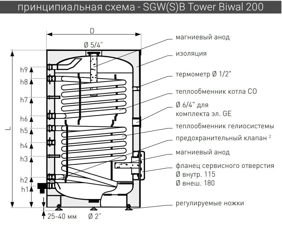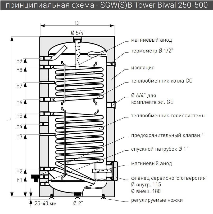 Це вертикальні баки підлогового монтажу з двома спіральними теплообмінниками. Вони призначені для сумісної роботи з котлами і сонячними колекторами.