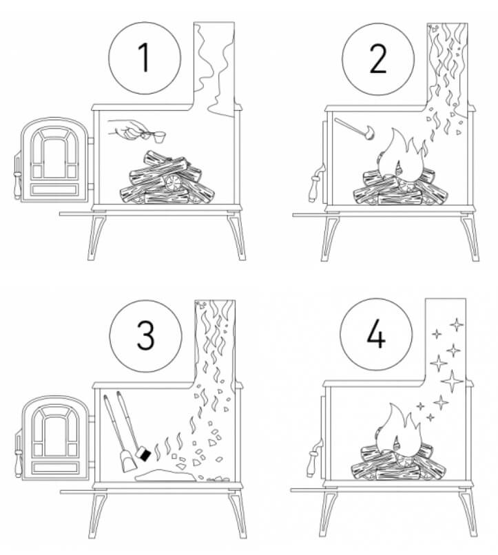 Суміш спеціальних кристалів. Частина з них працює як каталізатор і перетворює сажу деревини в горючі гази, інша частина - виділяє гази при високій температурі, які потім вступають в реакцію зі смолистими відкладеннями, руйнуючи їх структуру. Все це призводить до випаровування вологи, яка є основним компонентом, що забезпечує твердість нальоту. Як наслідок, сажа стає сухішою і тендітнішою, обсипається, руйнується і згоряє.