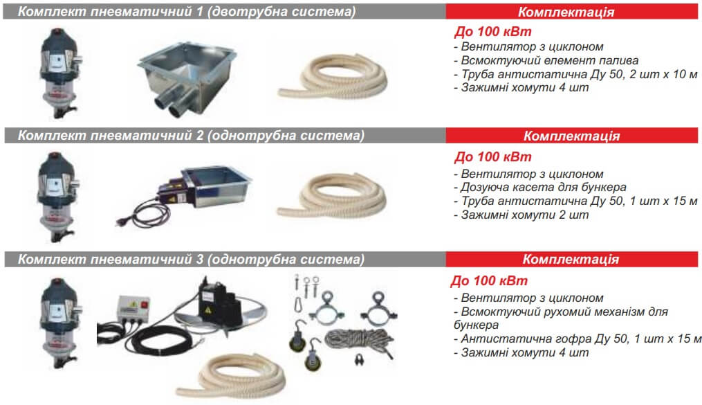 Вакуумні системи транспортування палива Heiztechnik представлені в трьох варіантах (комплектах):