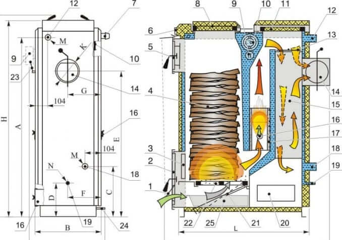 Котел на твердому паливі Калвіс 2-25 відноситься до водогрійних котлів нижнього горіння, працює на твердому паливі. Всі котли нижнього горіння комплектуються регуляторами тяги виробництва ESBE, які призначені для підтримки встановленої температури котла. Внутрішні стінки котлів виготовлені з листової сталі товщиною 6 мм, що збільшує термін служби котлів.