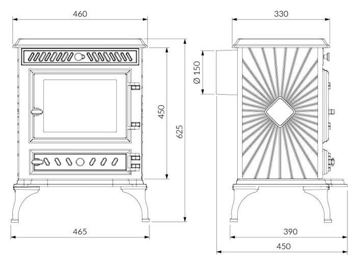 - Високоякісний чавун 8-10 мм: Товщина чавуну забезпечує високу міцність, підвищену теплопровідність і швидке обігрівання приміщення.