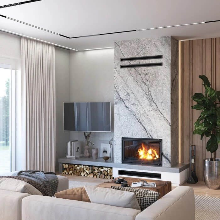 - Безсумнівним плюсом є те, що ця модель є топкою закритого типу. Конструкція закритого каміна дозволяє досягати оптимальної температури, при якій відбувається найбільш повне спалювання палива – дров.