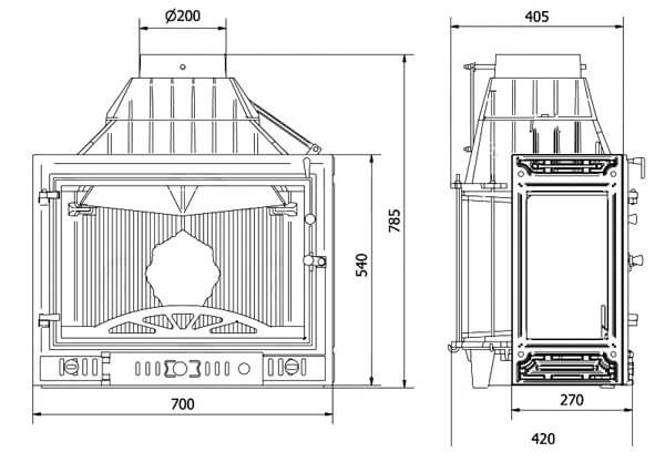 Схема камінної топки Kawmet W3 з лівим боковим склом