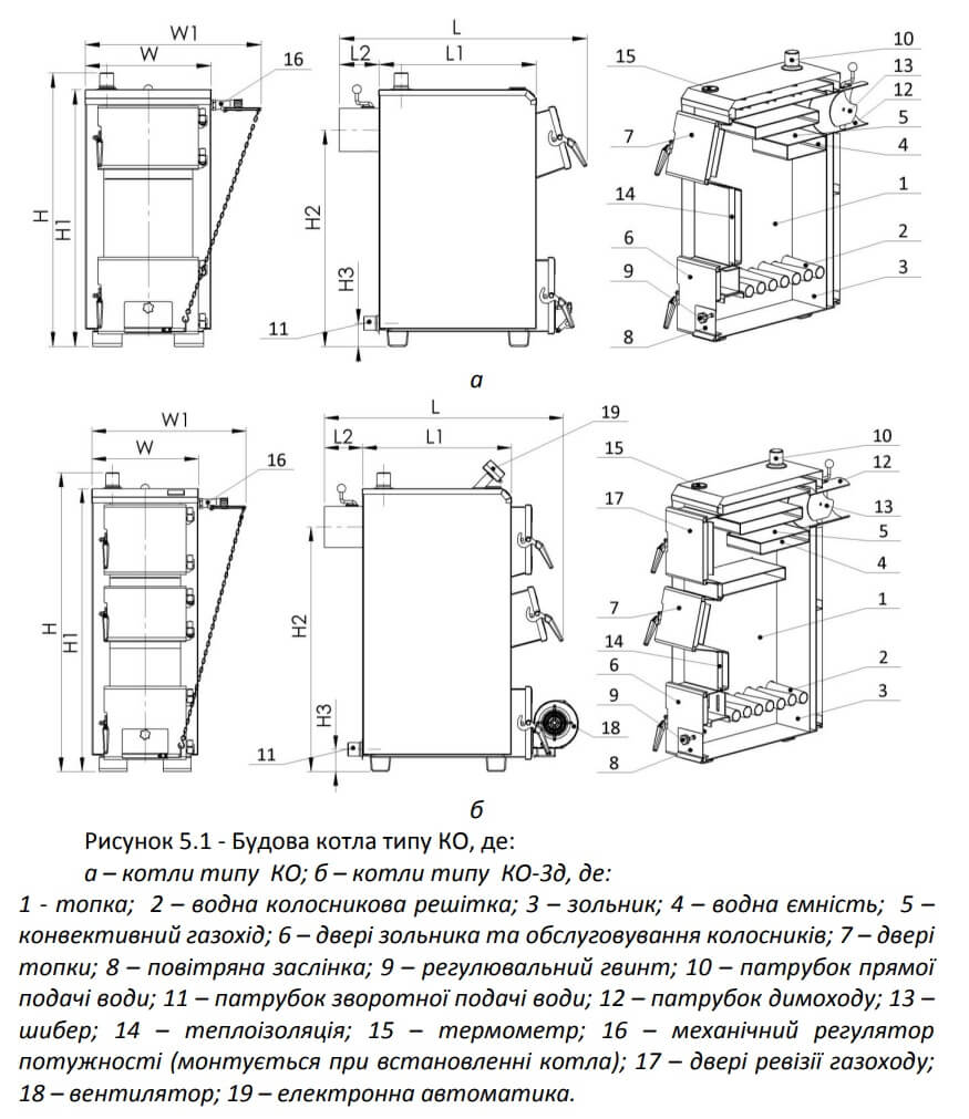 Котли КОТЛАНТ КО призначені для спалювання: вугілля, дрібного вугілля, деревини і його відходів, тирси та брикетів. Процес спалювання палива не вимагає використання електроенергії – котлів, що працюють за допомогою природного тяги повітря в димоході.