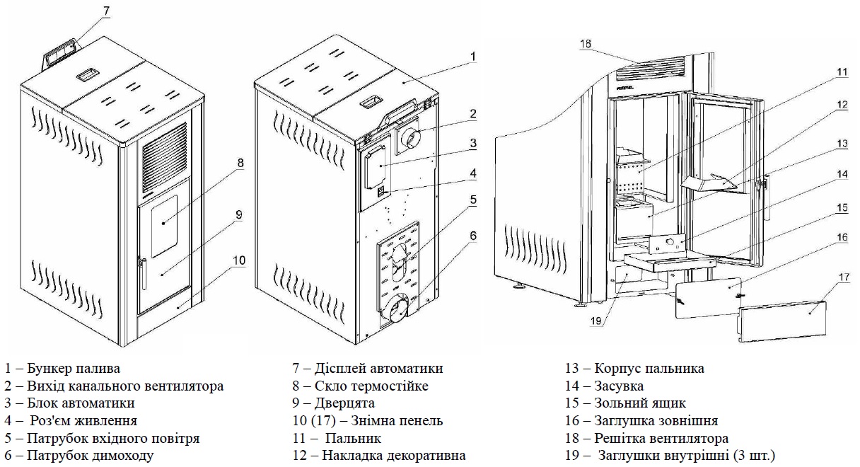Основні технічні характеристики каміну на пелетах KRONAS AIRPЕL: