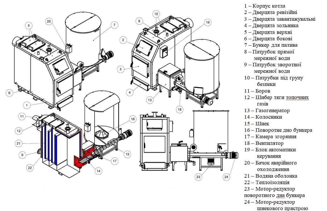 Схема котла KRONAS серії BIO MASTER 97- 500 кВт