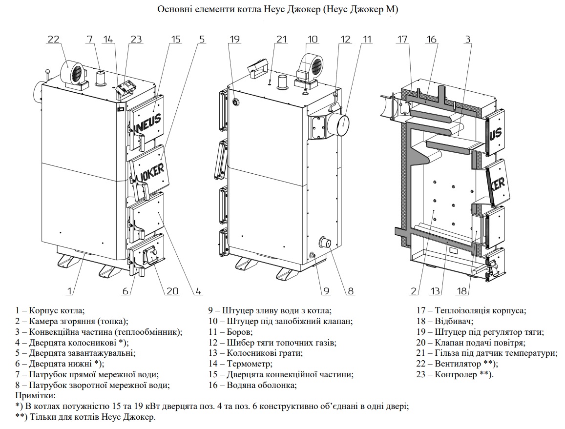 Основні елементи котла моделі Neus Joker 15-50кВт