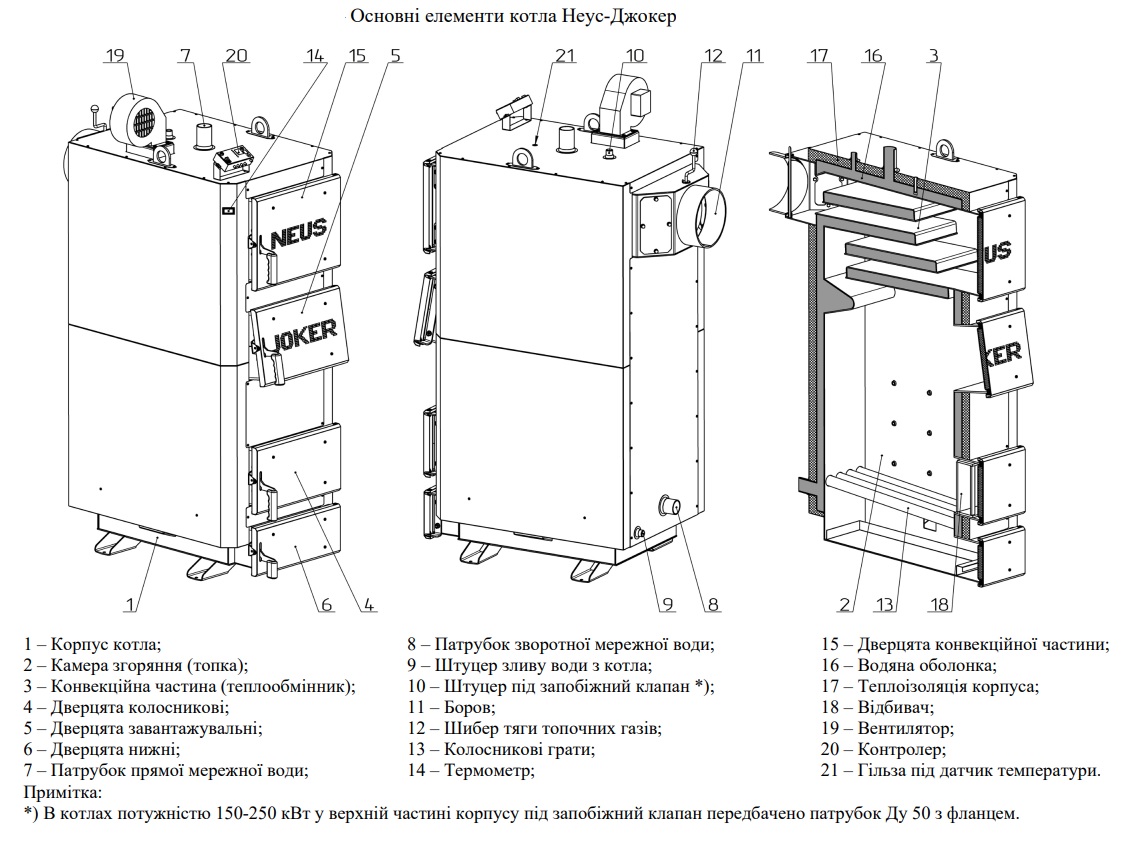 Основні елементи котла моделі Neus Joker 60-250кВт