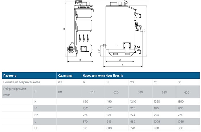 Твердопаливні котли НЕУС ПРАКТІК призначені для опалення побутових, виробничих та інших приміщень із системою центрального опалення. Основне призначення — підготовка та подача тепла на потреби з використанням різних видів твердого палива, таких як дрова, вугілля, деревні та торф’яні брикети.