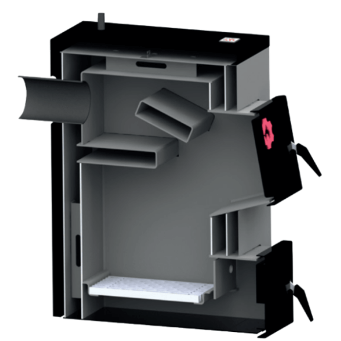 - Камеру згоряння з колосниковими ґратами із сталі 09Г2С (у 2 рази довговічніші за чавунні);