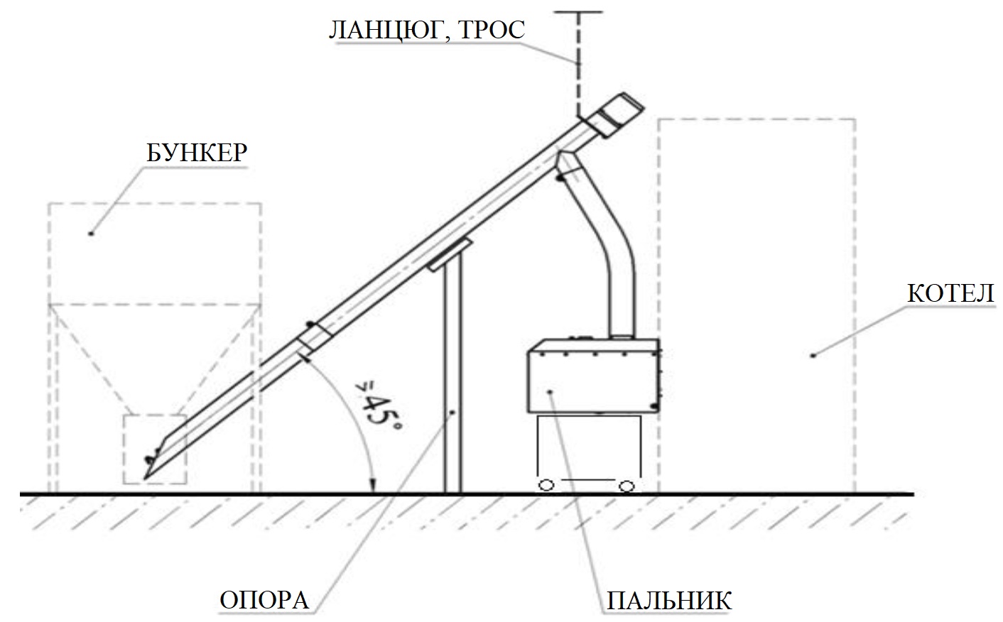 СХЕМА УСТАНОВКИ ПАЛЬНИКА, БУНКЕРА ТА СИСТЕМИ ПОДАЧІ ПАЛИВА