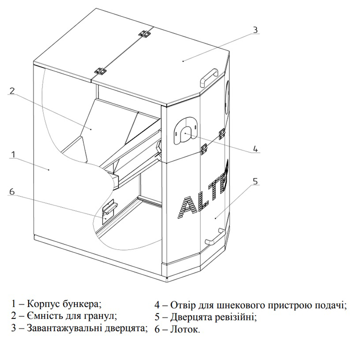 Бункер для зберігання пелет ALTEP (Альтеп) тип СБПЛ-М (СБПЛ-МС) є основною складовою для автоматизованого процесу подачі гранульованого палива в котли різних виробників.