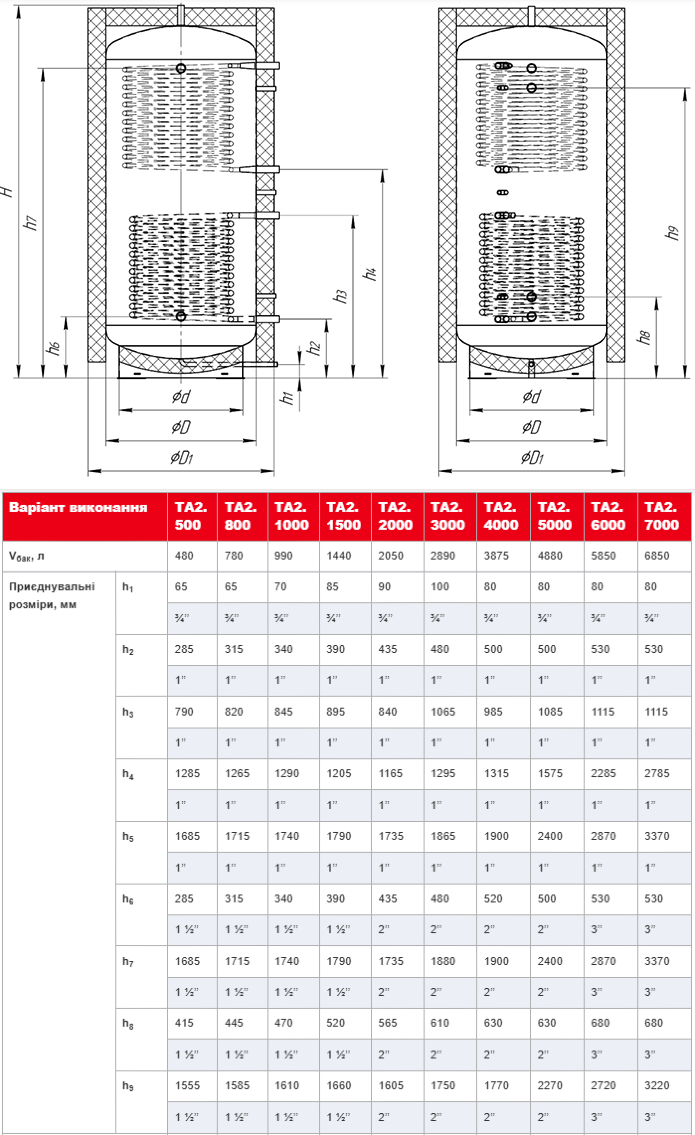 Теплоаккумулятор ALTEP TA2 с двумя теплообменниками без изоляции