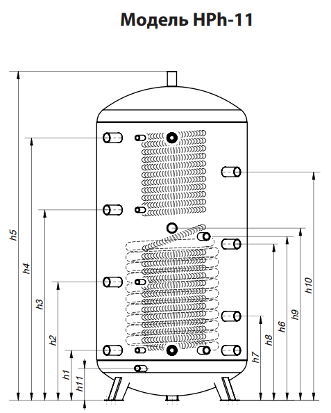 Аккумуляционные емкости с нержавеющим теплообменником и нижним черным теплообменником HPh-11