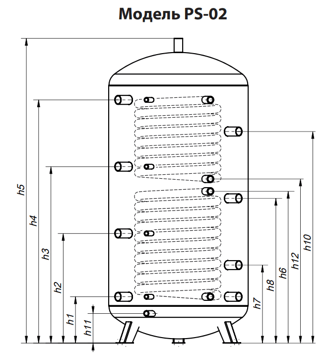 PS-11 – это аккумуляционные емкости с нижним и верхним черным теплообменниками