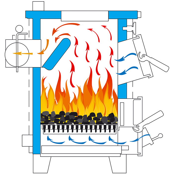 Котлы модели Тивер-АКТВ работают с ручной регулировкой тяги: без электронного контроллера и вентилятора, без термостатического регулятора тяги RT. Однако конструкцией предусмотрена возможность установки этих элементов.