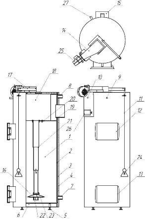 - Котел має циліндричну форму, що забезпечує його міцність і продовжує термін його служби.