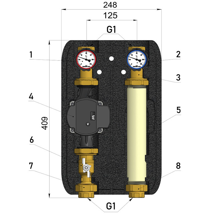 Насосні групи Termojet НГ-47 без змішувача 1″ ВР в теплоізоляції без насоса