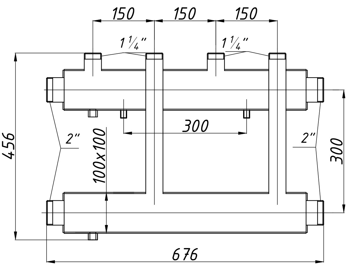 Колектор однобалковий Termojet К31ВН.125 (100) без теплоізоляції 2вгору + 1вниз
